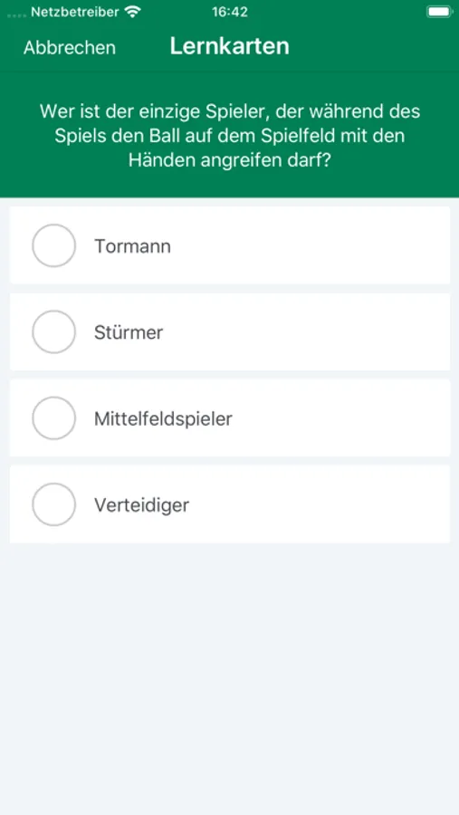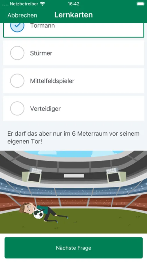 Und als dritte Möglichkeit wird angeboten, Wissen durch einen Test abzurufen, ohne davor explizit mit der Football Mobile Campus Tirol App gelernt zu haben.