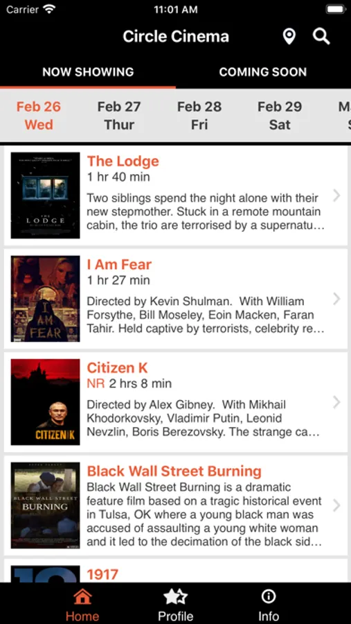 Stay informed about new movies, check showtimes, descriptions, trailers and purchase tickets