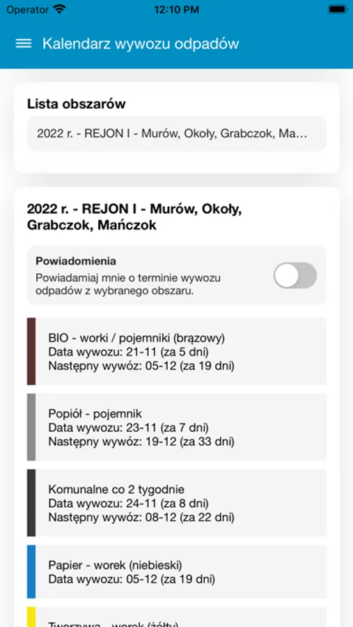 Aplikacja przypomni o terminie odbioru poszczególnych odpadów, poinformuje o zasadach prowadzenia selektywnej zbiórki odpadów, powiadomi o aktualnościach związanych z tą tematyką. Moduł umożliwia dodatkowo wysyłanie reklamacji odnośnie braku odbioru odpadów, uszkodzonego pojemnika lub innych sytuacji.