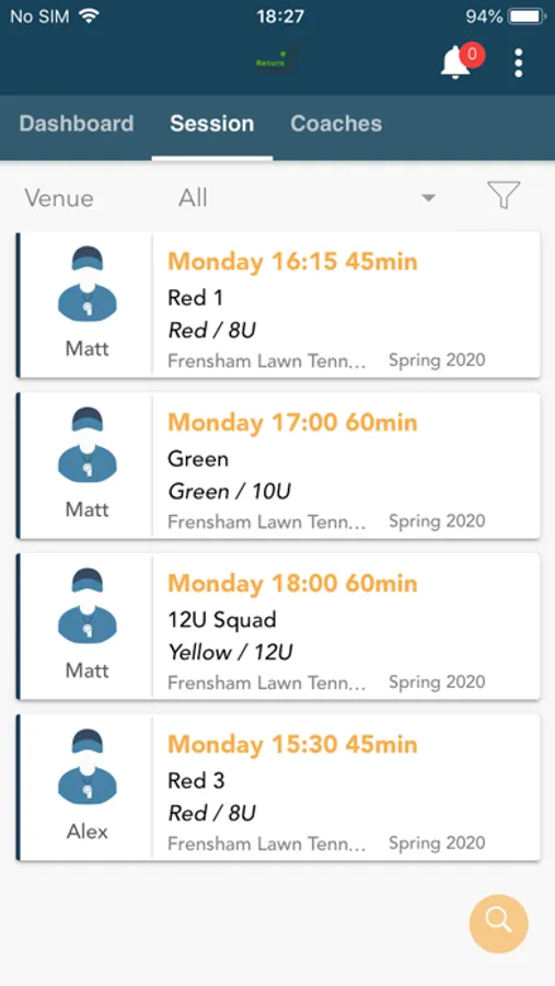 Our own branded app to facilitate booking on to our coaching programmes for 4 year olds to Adults of all levels - Schools, Club and Holiday programmes