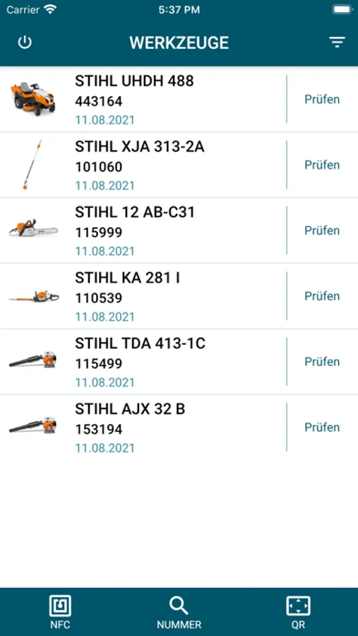 Digitale Erfassung von Werkzeugen und Maschinen die entsprechend der Betriebbsicherheitsverordnung prüfpflichtig sind. Unterstützung der Prüfung durch geeignete, werkzeugbezogene digitale Prüfvorlagen.