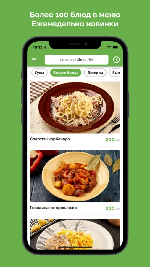 Более 100 блюд в меню. Каждую неделю мы добавляем в меню новые блюда.