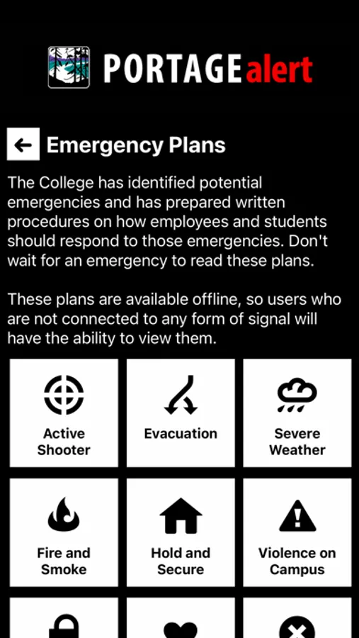 - Safety Notifications: Receive instant notifications and instructions from Portage College safety when on-campus emergencies occur.