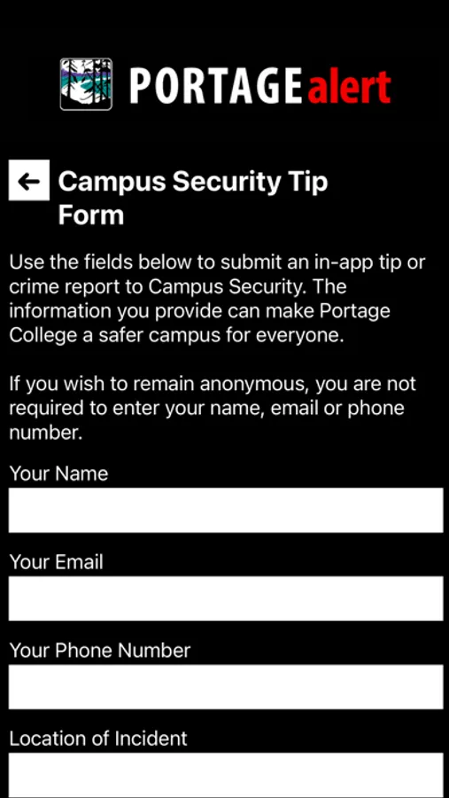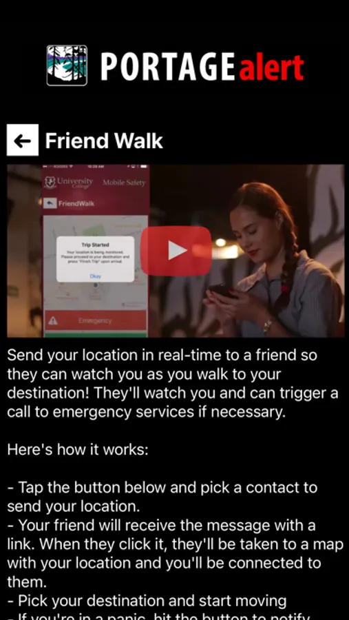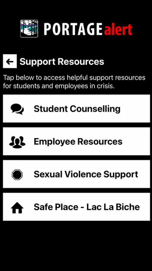 Portage Alert is the official safety app of Portage College. It is the only app that integrates with Portage College's safety and security systems. Campus Security has worked to develop a unique app that provides students, faculty and staff with added safety on the Portage College campus. The app will send you important safety alerts and provide instant access to campus safety resources.