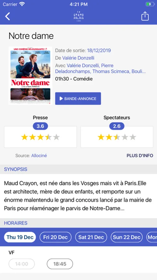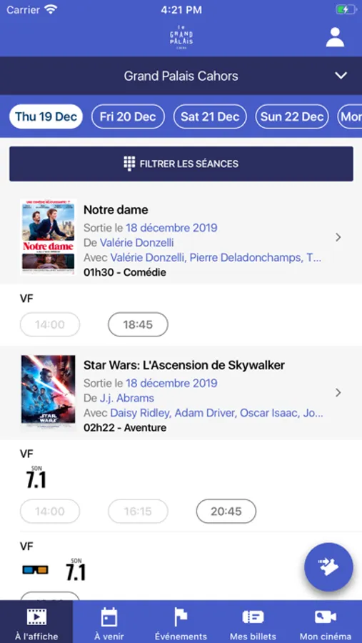 Retrouvez l'ensemble des informations de votre cinéma Cahors le Grand Palais et achetez directement vos places de cinéma sur votre Smartphone grâce à notre application.