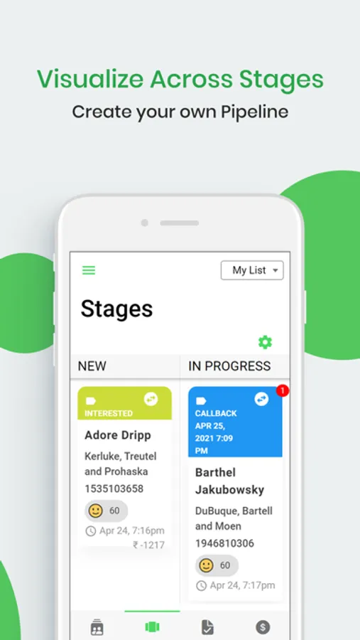 All your contacts at your finger tips. Move contacts between stages and visualize the current state of the contact. Filter the contacts based on Lead Score.