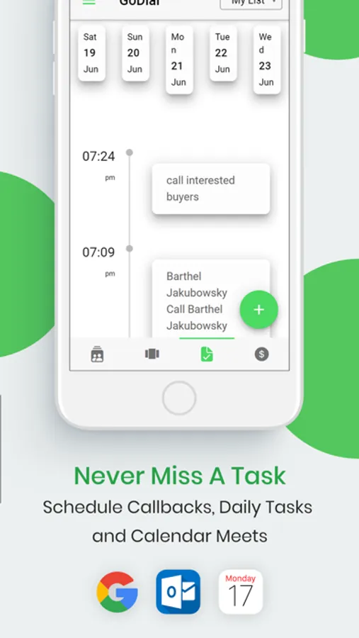 Never miss a Call. Set a Callback date and Time and get notification Reminders. Create tasks. Create calendar events on Google, iCalendar or Outlook.