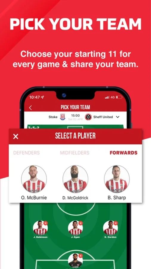 Choose your starting 11 for each Sheffield United fixture on our line-up builder and share with your friends socially.