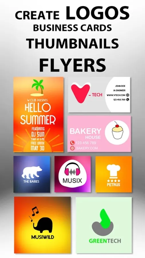You can create Logos, Business Cards, Posters, Flyers, Icons, Thumbnails !