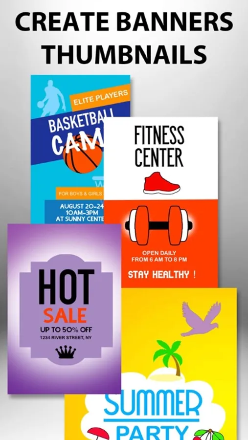 This App offers more than 1500 graphic elements. We have graphics for many categories, including sports, fitness, food, automotive, fashion and many others.