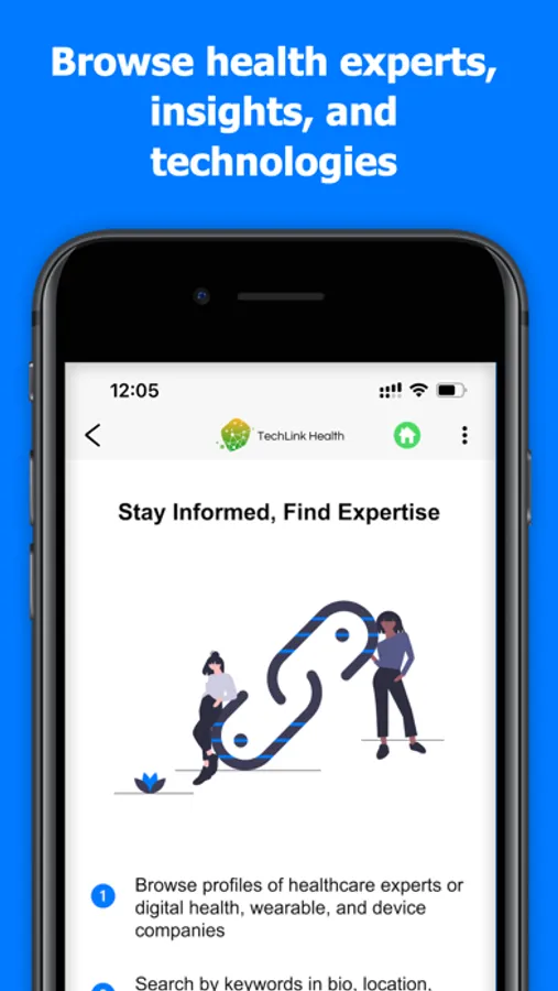 The future of health and wellness is strongly connected to the exchange of data and information from experts and companies as well as the ability for consumers to access information. Within TechLink Health, users can connect to insights, experts, and technologies simply by accessing the HealthLinks throughout the app.