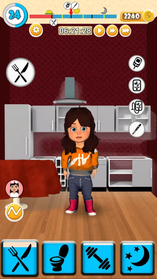 Na začátku ti bude pomáhat mluvený průvodce, který bude radit např. jak upravovat dávky insulinu, nebo jak se zachovat při hypo/hyperglykemii. Hra má integrovaný simulátor interakce glukózy s insulinem, takže průběh glykemie u postavičky se podobá průběhu glykemie u člověka. Za správně prováděné úkoly budeš odměňován virtuálními mincemi. Za nasbírané mince si můžeš svoji postavičku vylepšovat, převlékat, nakupovat jí nový nábytek a odemykat bonusový materiál.