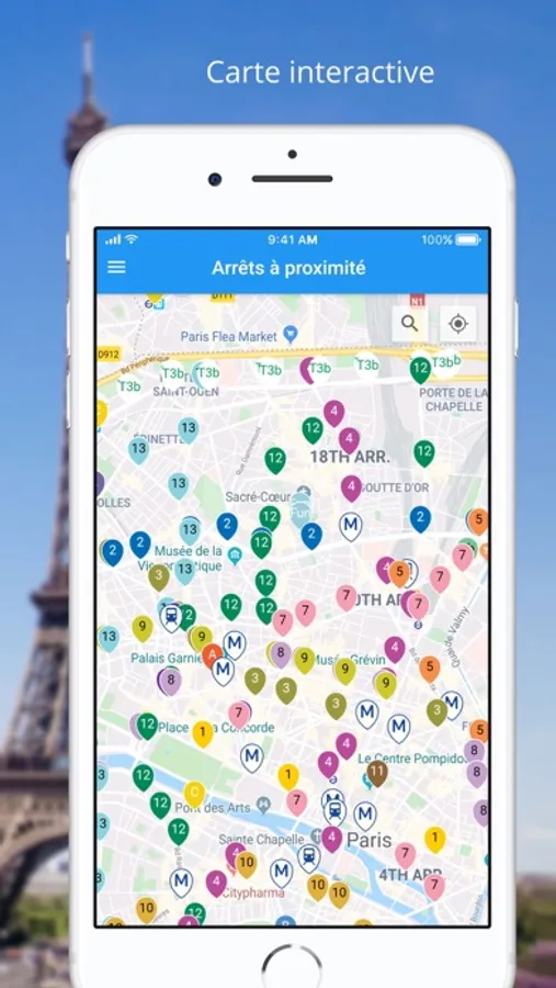 D'un seul coup d’œil, visualisez sur la même carte la station la plus proche, tout mode de transport confondu.