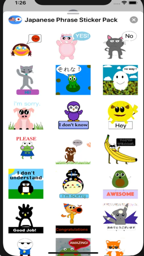 These 60+ stickers translate simple words, phrases and messages from Japanese to English. Perfect to help students who are looking to learn a new language, communicate with someone overseas, or just to spice up their iMessage conversations.
