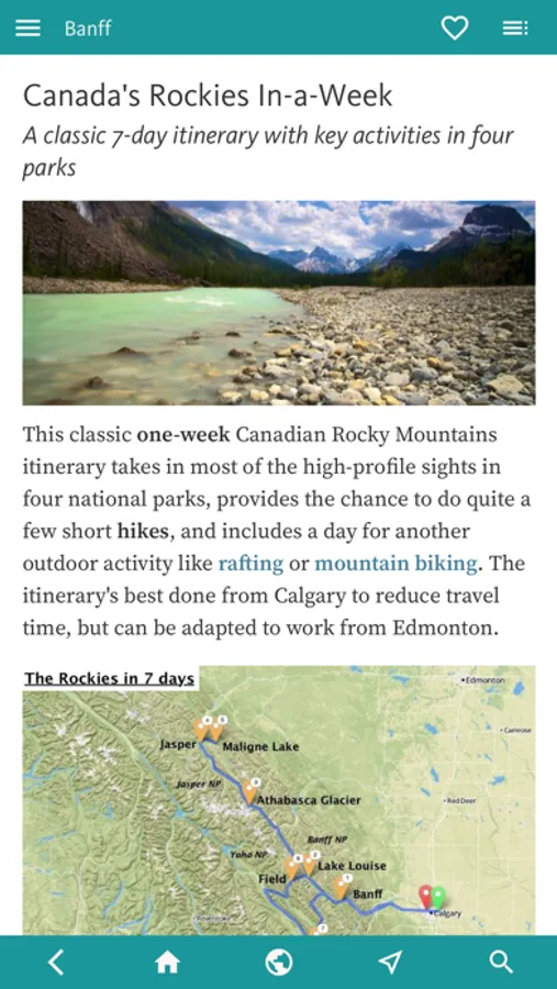 Hand-crafted ITINERARIES then offer first-timers a selection of suggestions on how to spend their time; ranging from simple day-trips to Banff to extensive two-week tours of the Canadian Rockies.