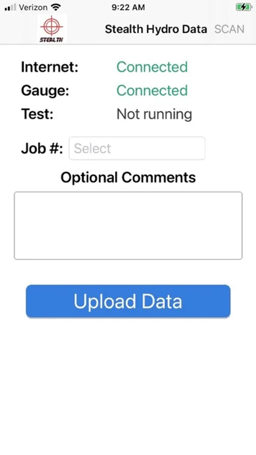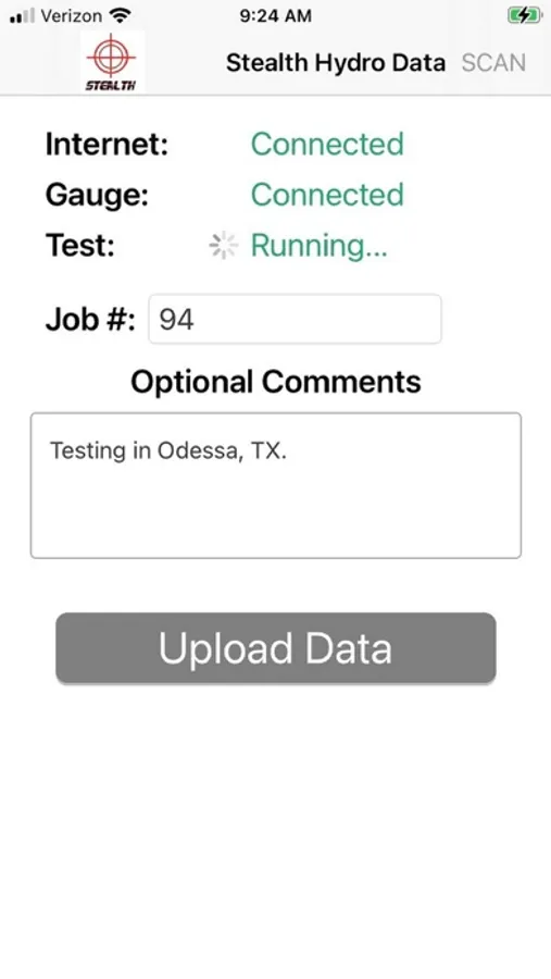 Stealth Application for pressure testing sections of pipe with a digital pressure gauge. All data is stored digitally and test reports are created for our customer with date/time stamp.