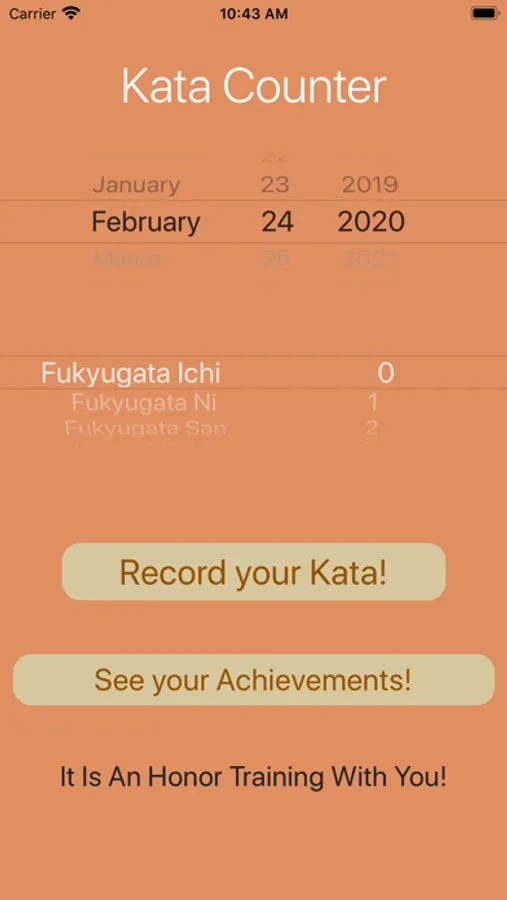 Keep track of your kata training. Log the number of each kata you do every day. Then review how many of each kata you’ve done today, yesterday, this week, this month, and since you’ve started using the app. See how long it's been since you’ve last performed a specific kata.