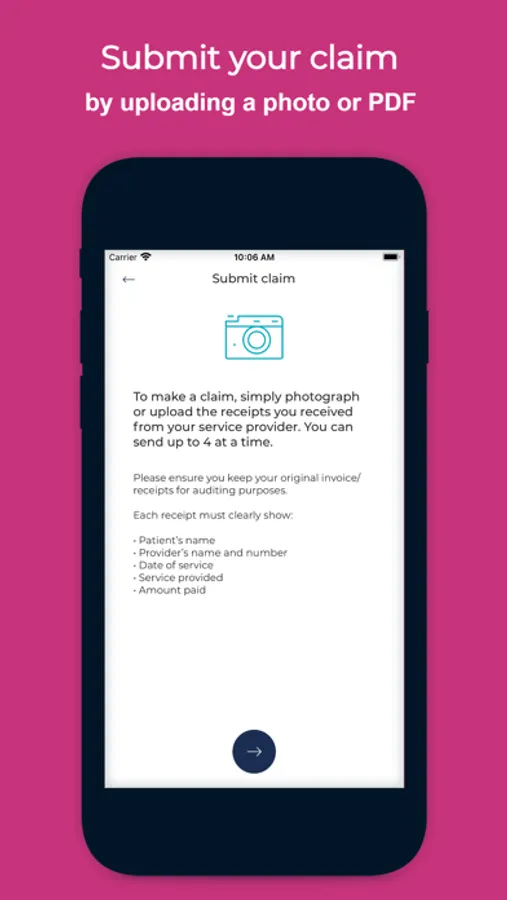 - Submit extras claims by uploading a photo or PDF copy of your receipt