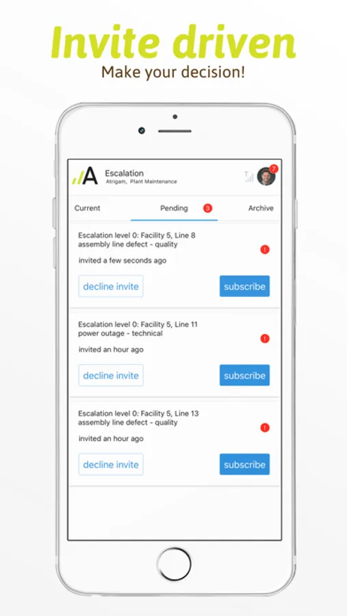The Atrigam app gives people access to Atrigam's revolutionary collaboration platform. It allows people, machines and devices collaborate smarter using dedicated events and information related to a specific context.