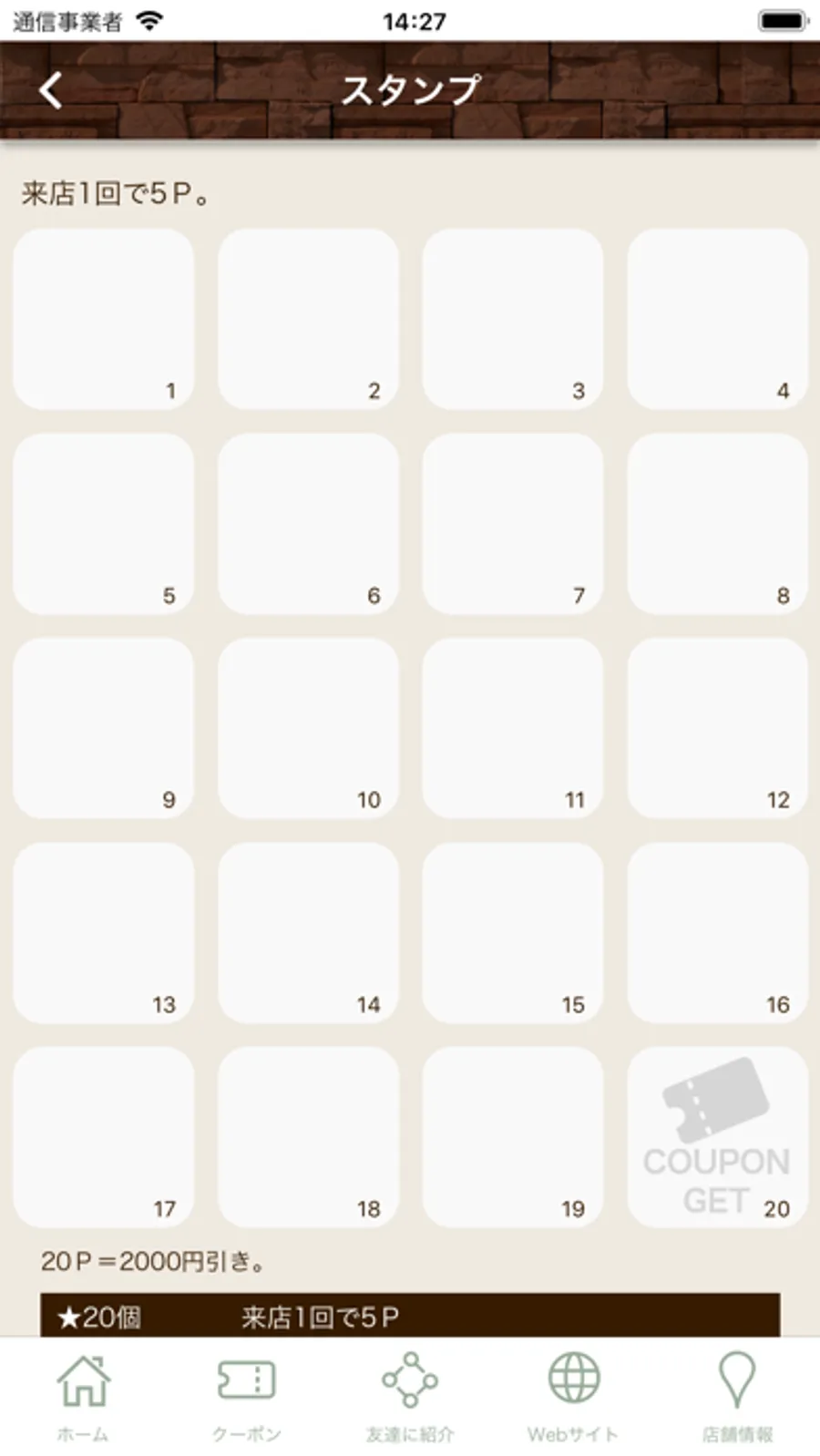 ご来店スタンプをためるとお得なクーポンが発行されます(ご利用条件がある場合がございます)