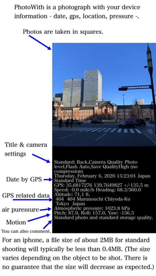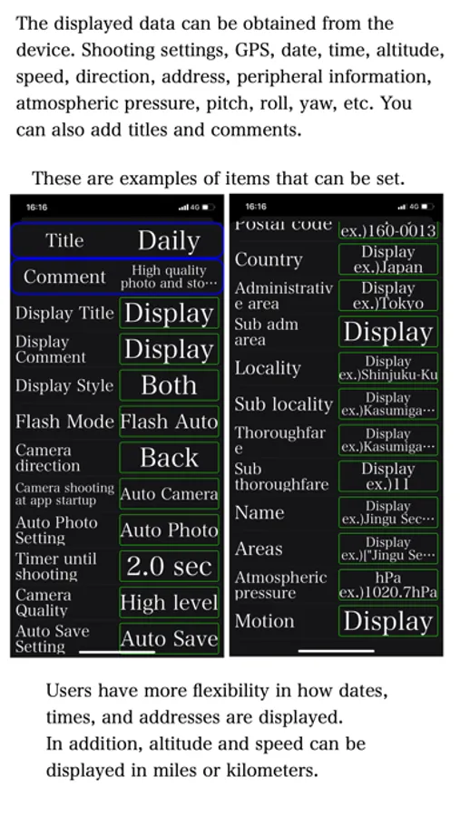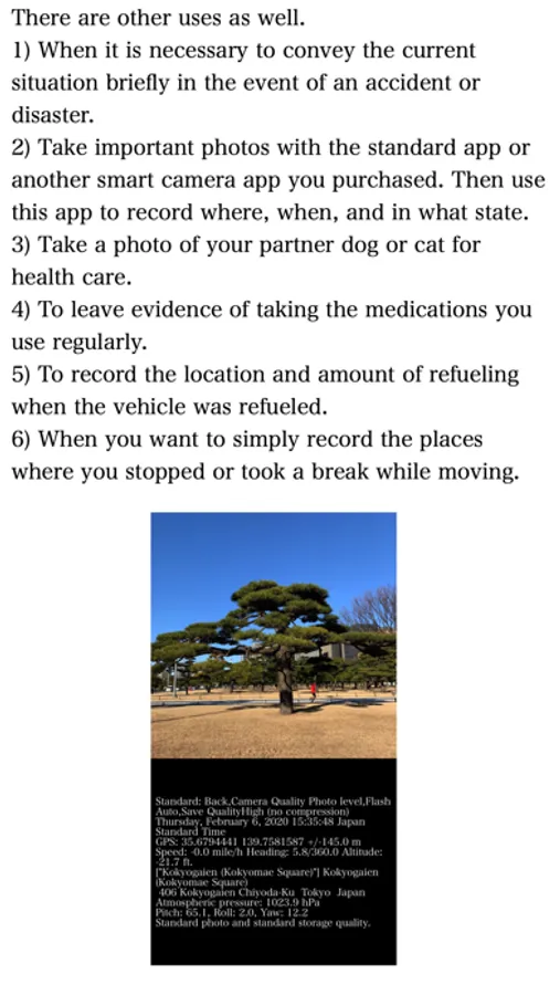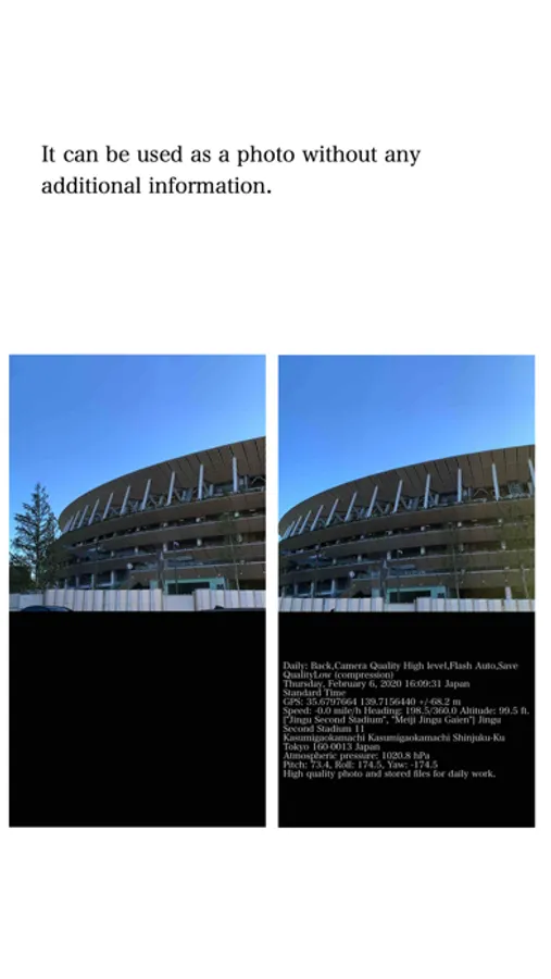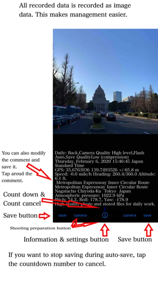 1. An app that can record date and time, GPS, shooting address, direction, altitude, pressure, and moment along with photos