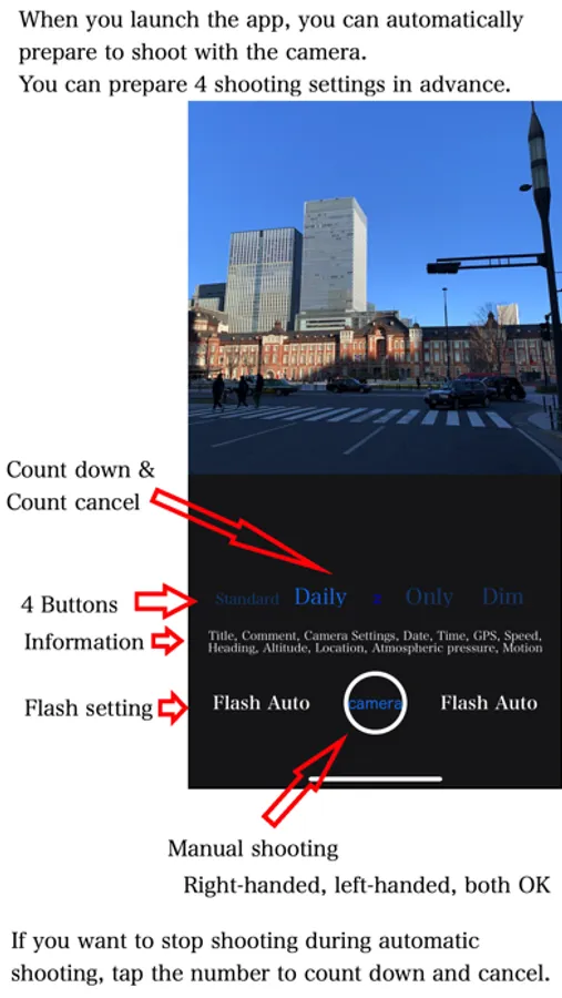 4. It is possible to perform shooting preparation at the same time as launching the application and shoot automatically.