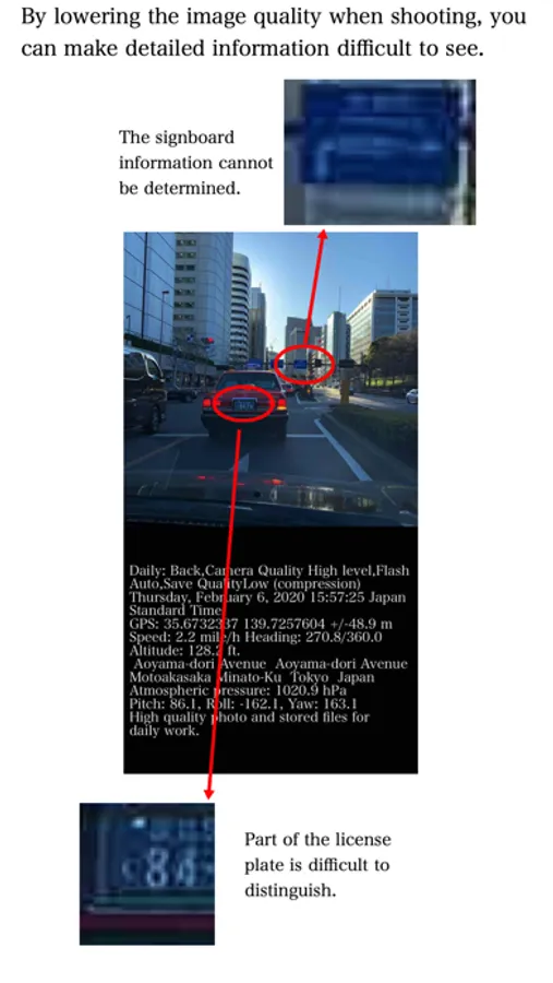 4. When you want to avoid getting too detailed information from the viewpoint of privacy, for example, when you want to take a picture with an image quality that does not allow you to know the number of the license plate of the car in the picture.