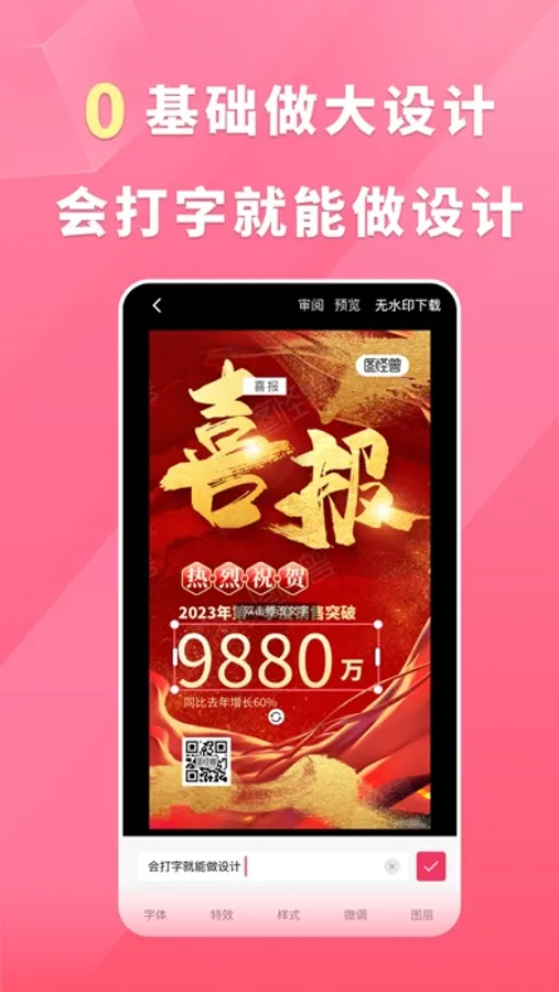 只需改字换图,3步7秒,手机一键出海报。无门槛做图做视频,从此设计不求人。