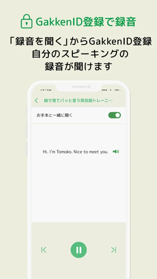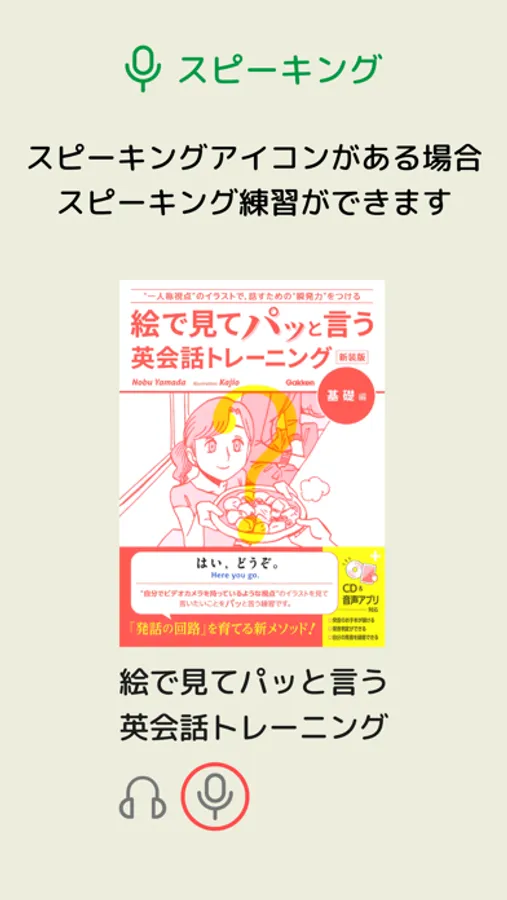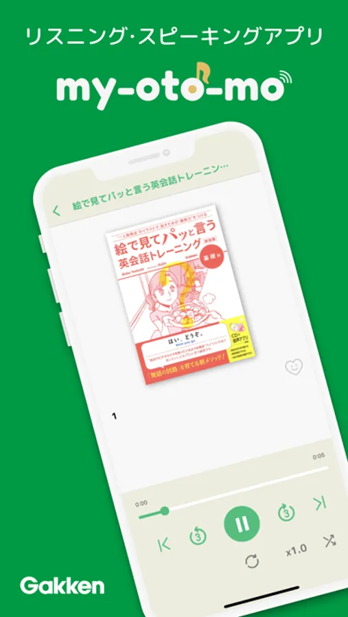 学研の語学系書籍についている音声を、スマホやタブレット端末で再生できる無料アプリです。再生速度調節(0.5~2.0倍)、AB間リピートなど、語学学習に役立つ便利な機能つき。「CDプレイヤーがなくてもスマホで音声が聞ける!」「聞きたいトラックだけを選べて便利!」と好評です。「スピーキング」対応書籍では、発音の判定や録音再生が可能です(録音した音声の再生にはGakkenIDへの登録が必要です)。