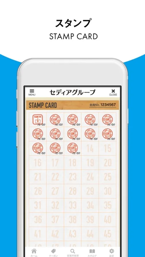 会員証機能の他に、貯めて嬉しいスタンプ機能、お得なニュース配信、事業所一覧など毎日のお仕事に役立つ機能を取り揃えています。