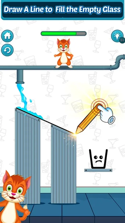Draw a line to connect with the glass so that the glass gets filled up with water balls.