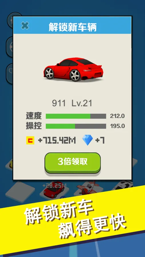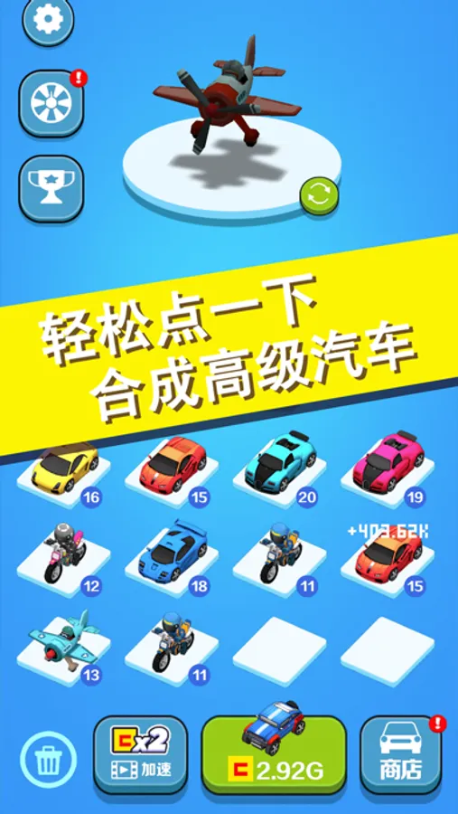 所以玩起来根本不累,金币也是大把大把的,买车然后点击合成高级车,对了,不止是汽车,还有摩托,飞机,坦克~之后会加上更多,超跑开多了也腻啊对吧?