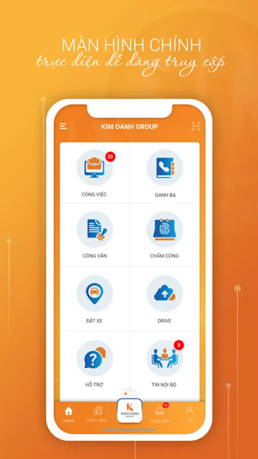 - Thông báo: Chức năng thông báo trên ứng dụng sẽ giúp chúng ta nắm rõ các thông tin sự kiện và các hoạt động của Công ty một cách nhanh chóng, giúp các Đơn vị quản lý được tất cả các nội dung thông báo của Công ty.