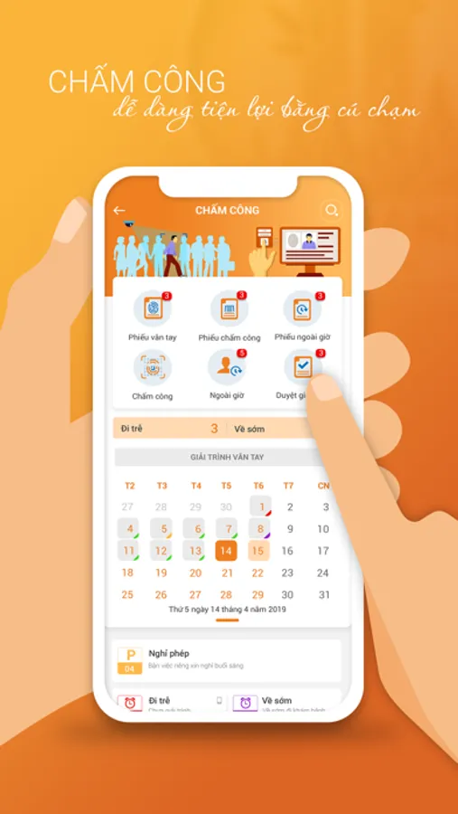 - Chấm công: Hệ thống tự động hóa lấy vân tay, giải trình vân tay, quy trình chấm công điện tử được phê duyệt từ Trưởng đơn vị. Quy trình phê duyệt ngoài giờ. Tổng hợp bảng công của công ty.