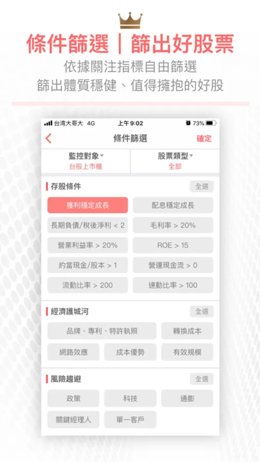 專為存股族所打造的投資APP,三步驟找到具有強勁體質及經濟護城河的企業,並一眼判斷股票便宜價。一款兼具【選股、社群、學習、存股規劃】的投資APP,立即免費下載!