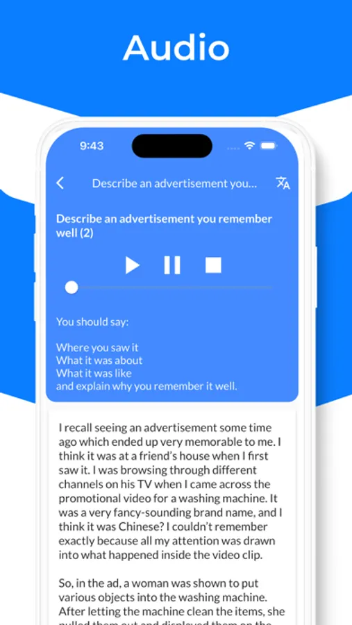 - Cue Card with Sample Answers: Get inspired with ready-to-use answers.