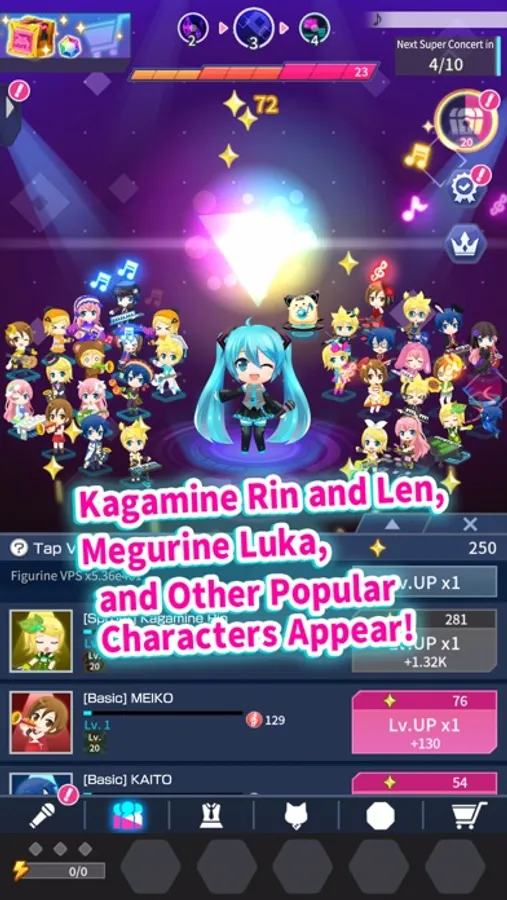 In addition to Hatsune Miku, other popular virtual singers such as Kagamine Rin, Kagamine Len, KAITO, and MEIKO appear!