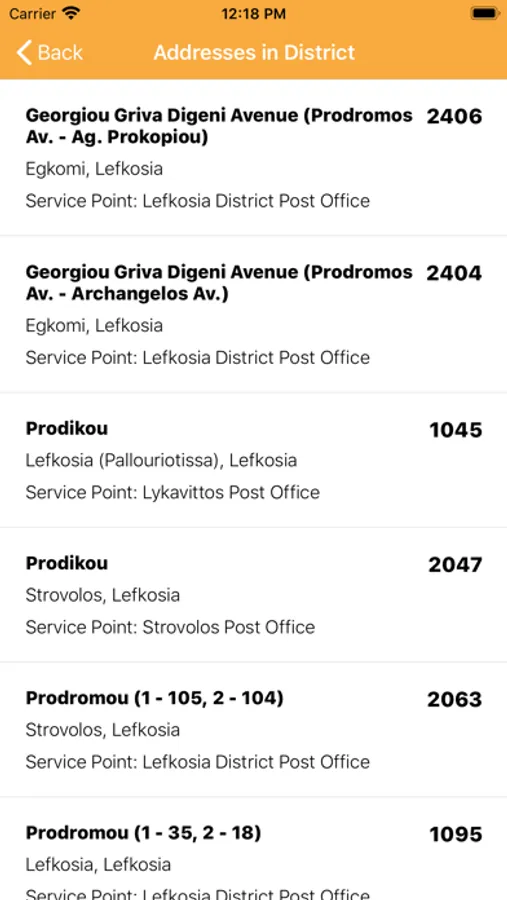 Search for a postal code of a street, a P.O. Box or a Government Ministry/Department