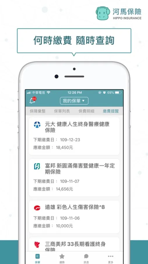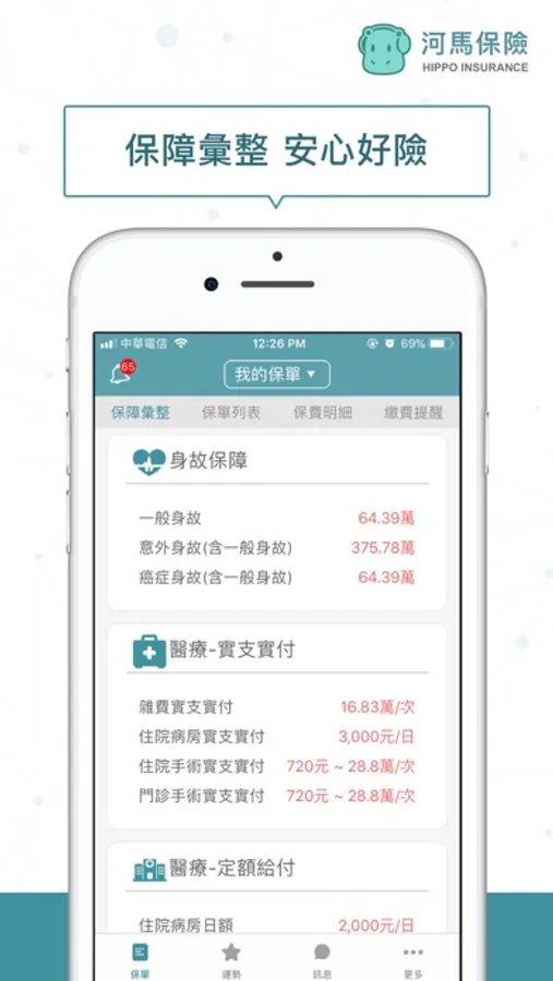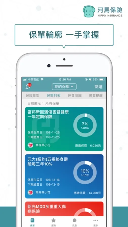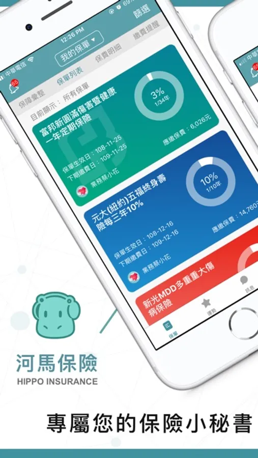 使用《河馬保險》保險小秘書,讓您保障隨時查、保費記得繳、顧問有傳達、保單沒煩惱~
