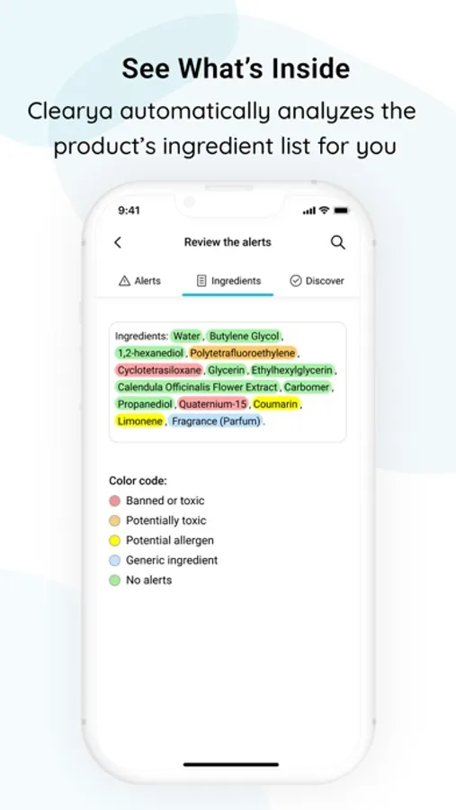 3. Automatic alerts on potential health risks hidden in ingredients lists for beauty, personal care, baby care, cleaning products, and more.