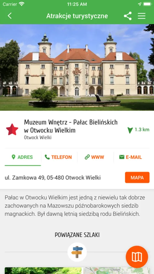 Mobilny przewodnik „Powiat Otwocki” pokaże nam, gdzie najlepiej spędzić czas, jakie czekają na nas atrakcje, gdzie możemy smacznie zjeść lub zregenerować siły. W aplikacji znajduje się spis najciekawszych zabytków i miejsc wartych zobaczenia. Wszystkie obiekty zostały podzielone na kategorie, każdy z nich posiada także swoją wizytówkę, która zawiera opis, dane teleadresowe oraz położenie.