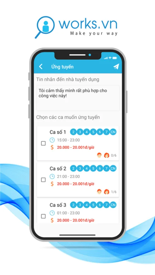 - Ứng tuyển vào các công việc và ca làm việc phù hợp