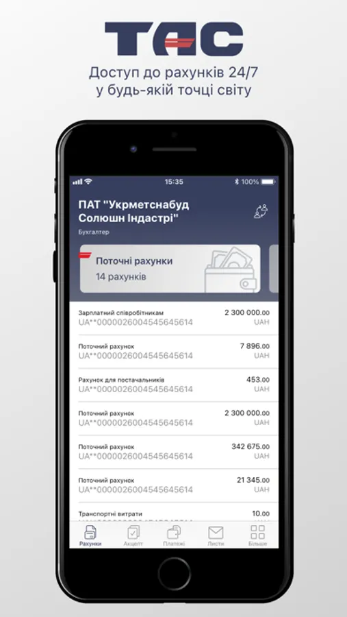 Система дистанционного банковского обслуживания «TAC Mobile» обеспечивает юридическим лицам возможность управлять финансами своего предприятия.