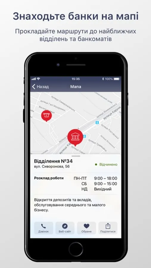 - просмотр списка ближайших отделений и банкоматов банков, а также их расположение на карте