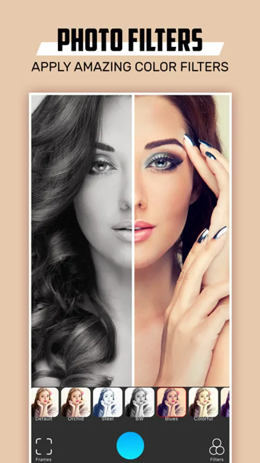 • Along with effects on live camera, there is an option to pick image from gallery and apply different effects, foster frames, text on it.