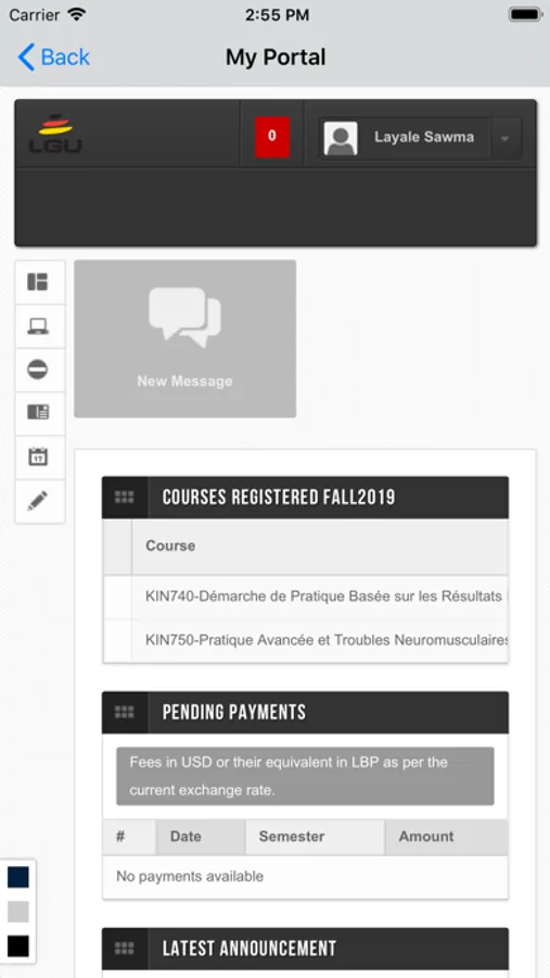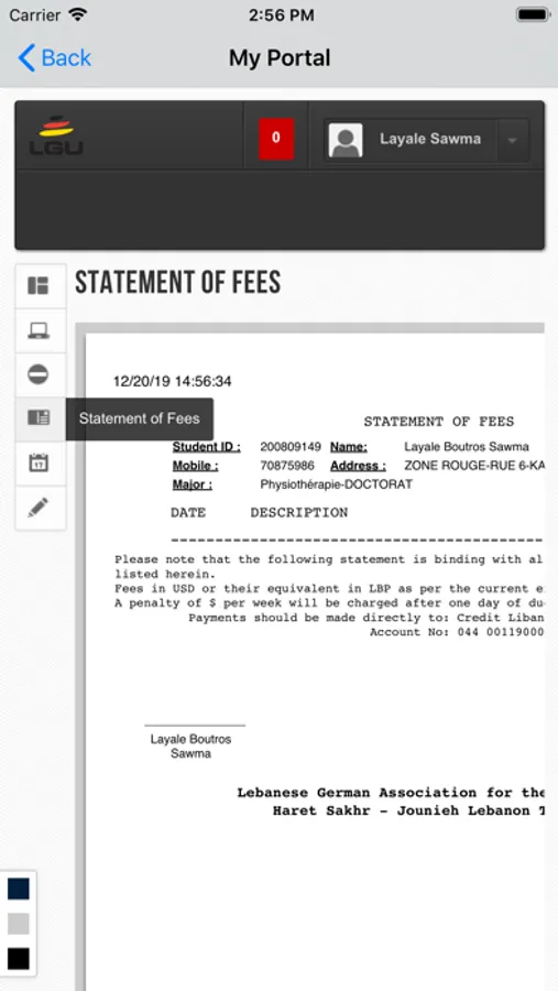 This application allows LGU Lebanese German University students to receive notifications such as: