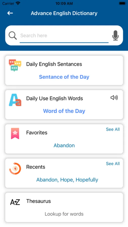 This App contains more advanced features i.e. word of the day, spelling suggestions, advanced learner's vocabulary, history of the searched words and save favorite words easily.