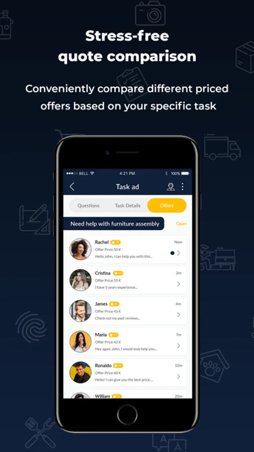 Check out offers sent to you by local professionals. Compare profiles, reviews, quotes, and book your preferred Co-Tasker.