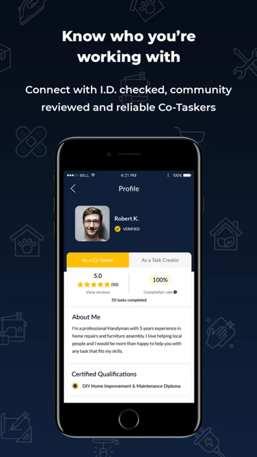 - All Co-Taskers are ID-verified before they can work on the platform and reviewed by the community members after every completed task. A Reliability Rating is also applied to help build our transparent community.