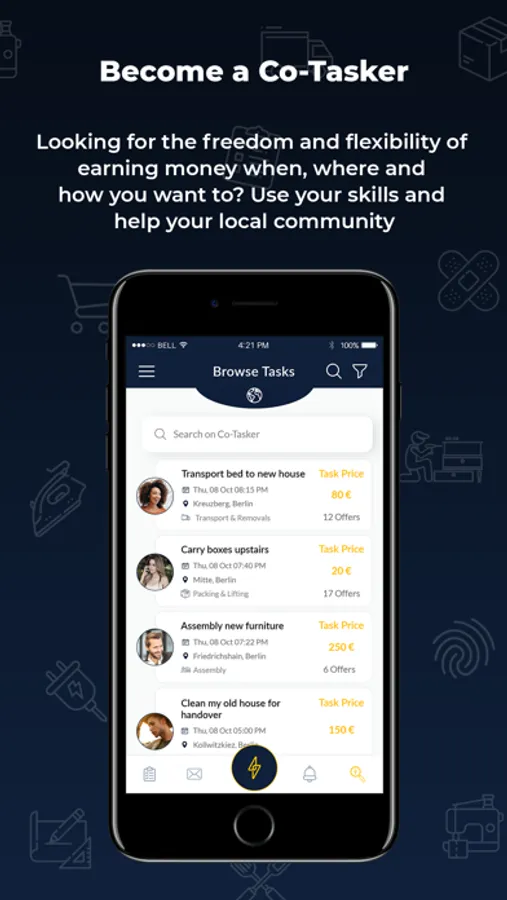 So if you're interested in an easier way of finding flexible new work opportunities around your schedule: Download the app, get verified, build your profile with your professional experience, send offers on task ads, and start earning money as a Co-Tasker!